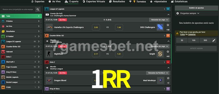 O 1RR oferece uma grande seleção de opções de apostas em e-sports com probabilidades competitivas